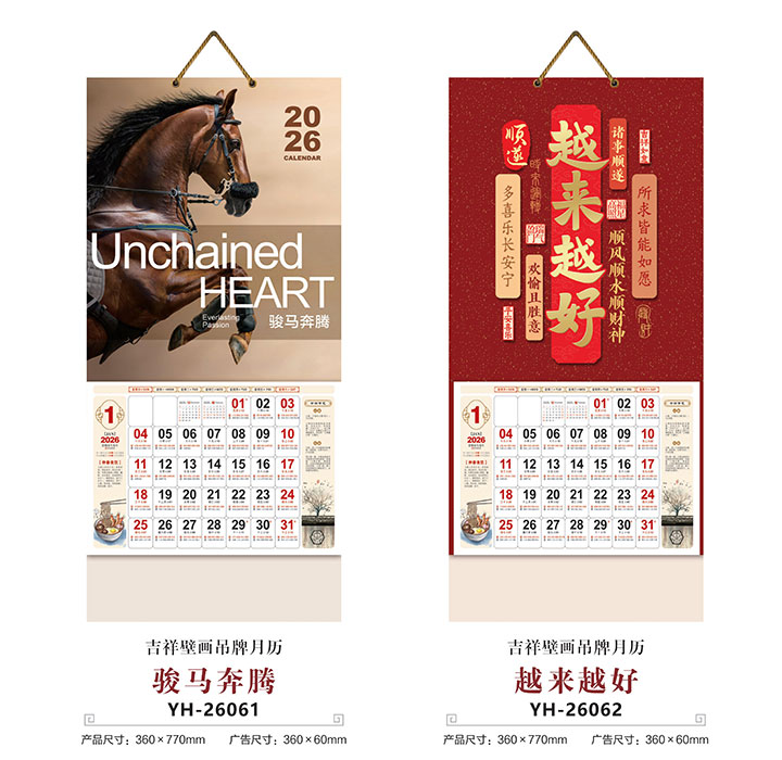 YFYH180大六开UV浮雕吊牌月历