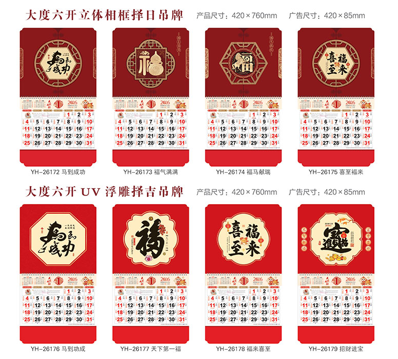 YFYH177大六开UV浮雕吊牌月历