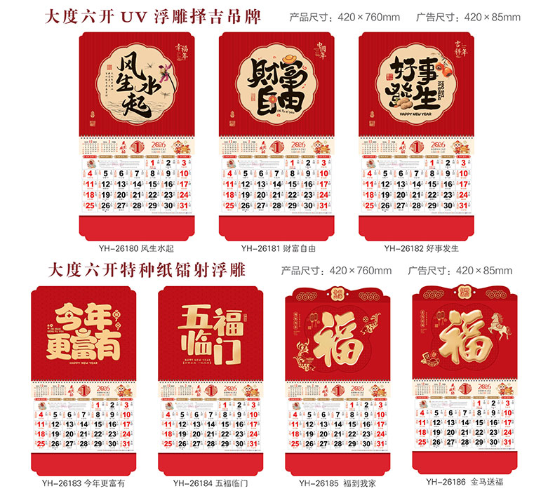 YFYH181大六开UV浮雕吊牌月历