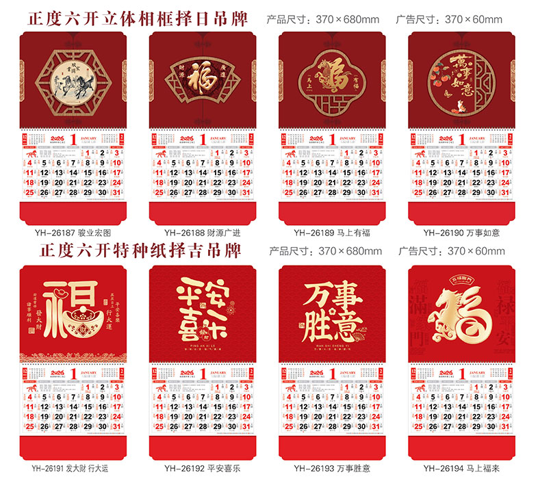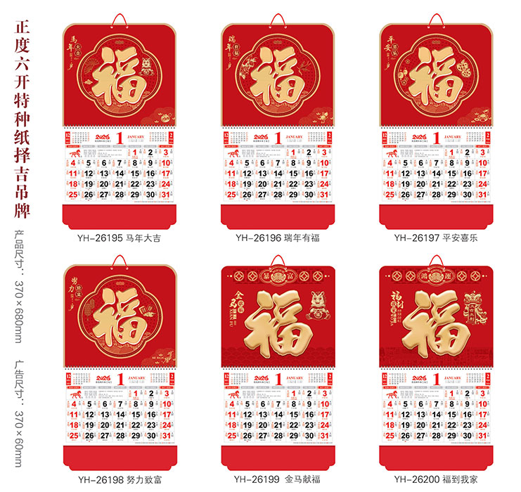 YFYH195正六开特种纸吊牌月历