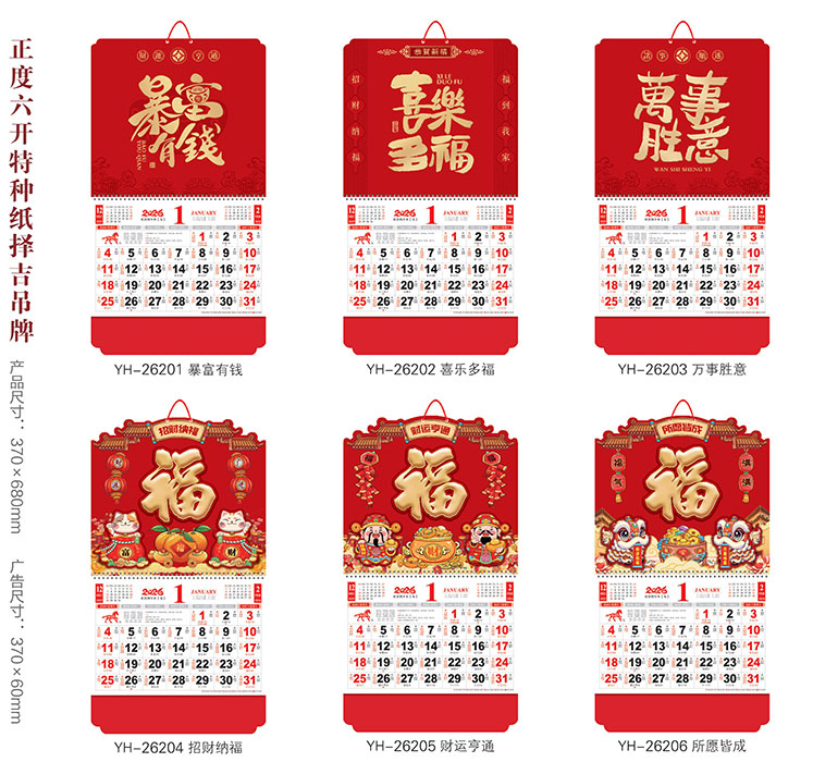 YFYH178大六开UV浮雕吊牌月历