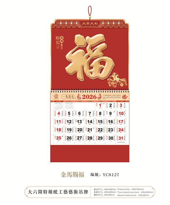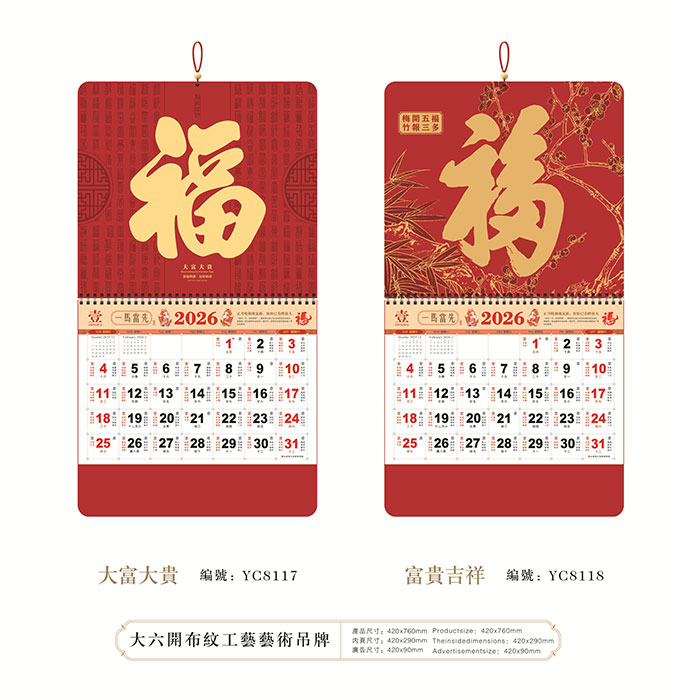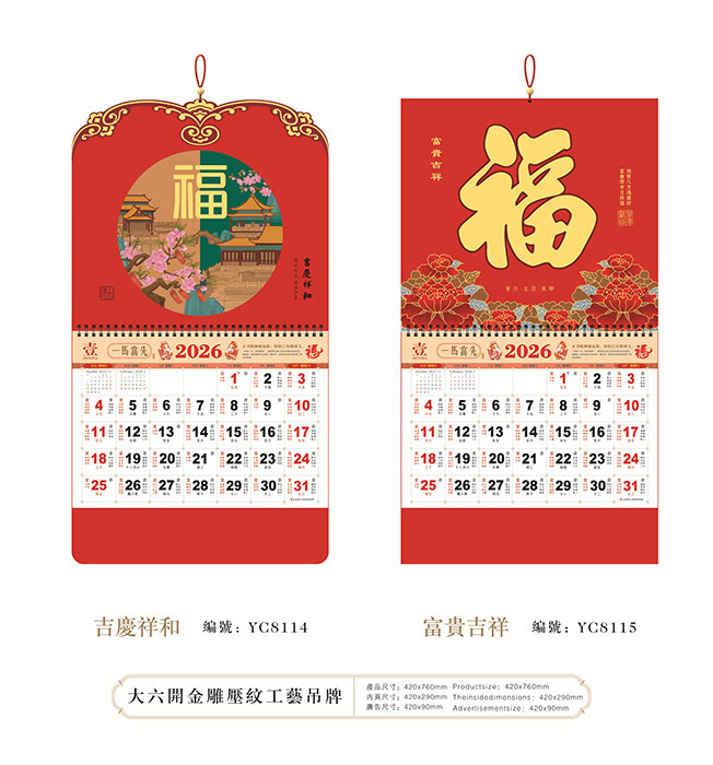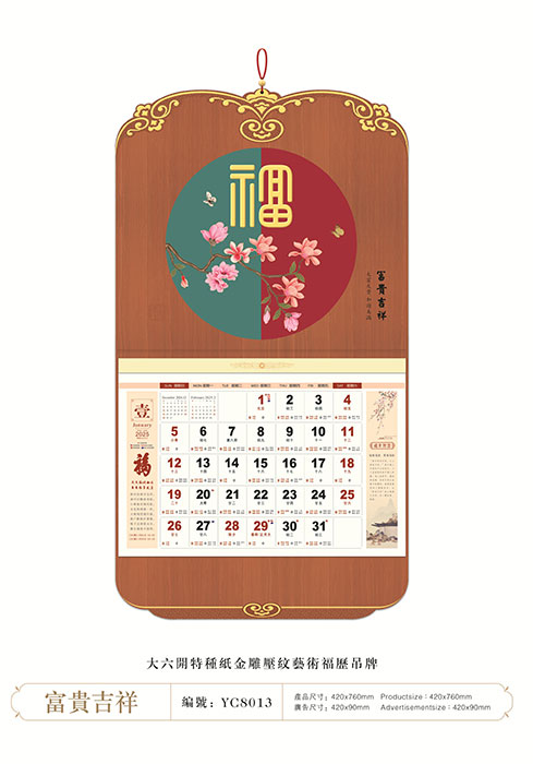 YFYC8013大六开特种纸金雕压纹艺术福历吊牌