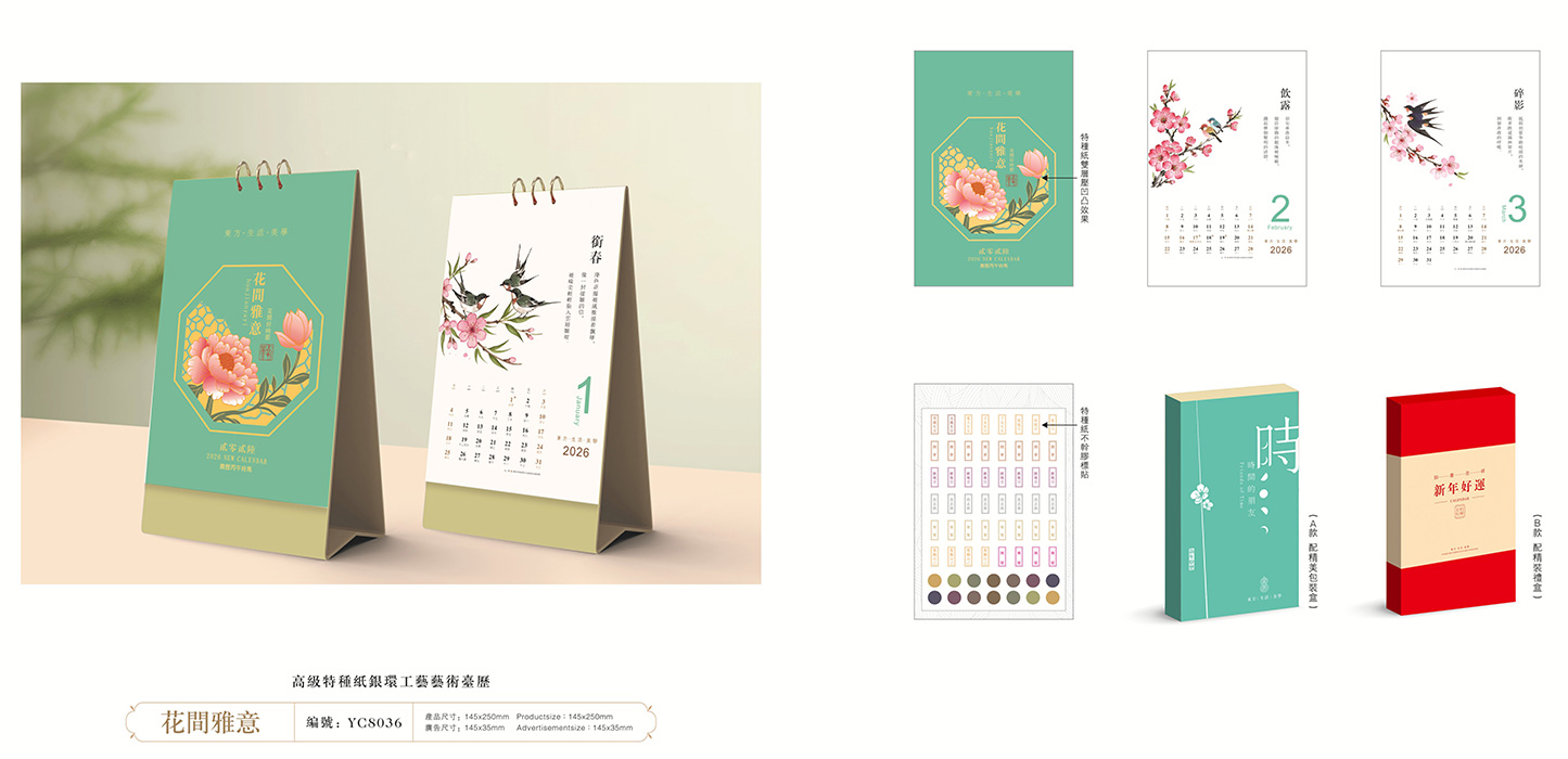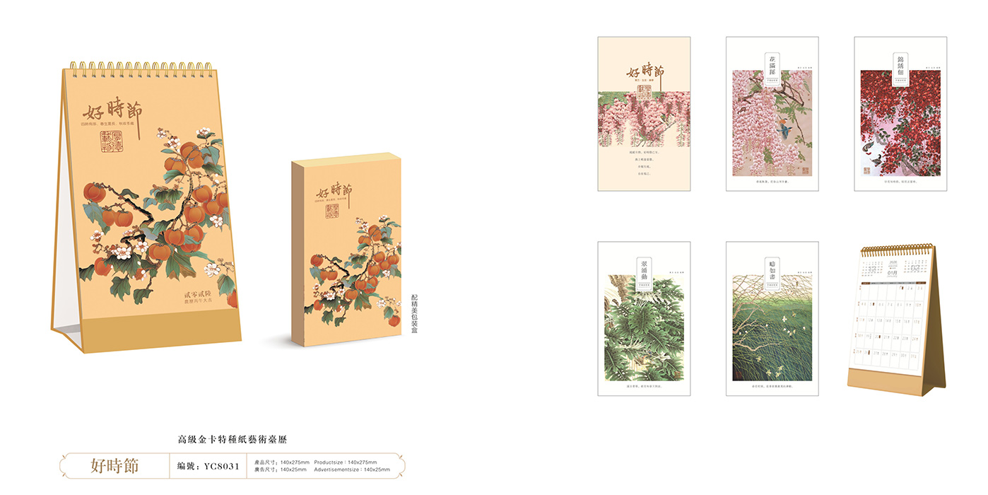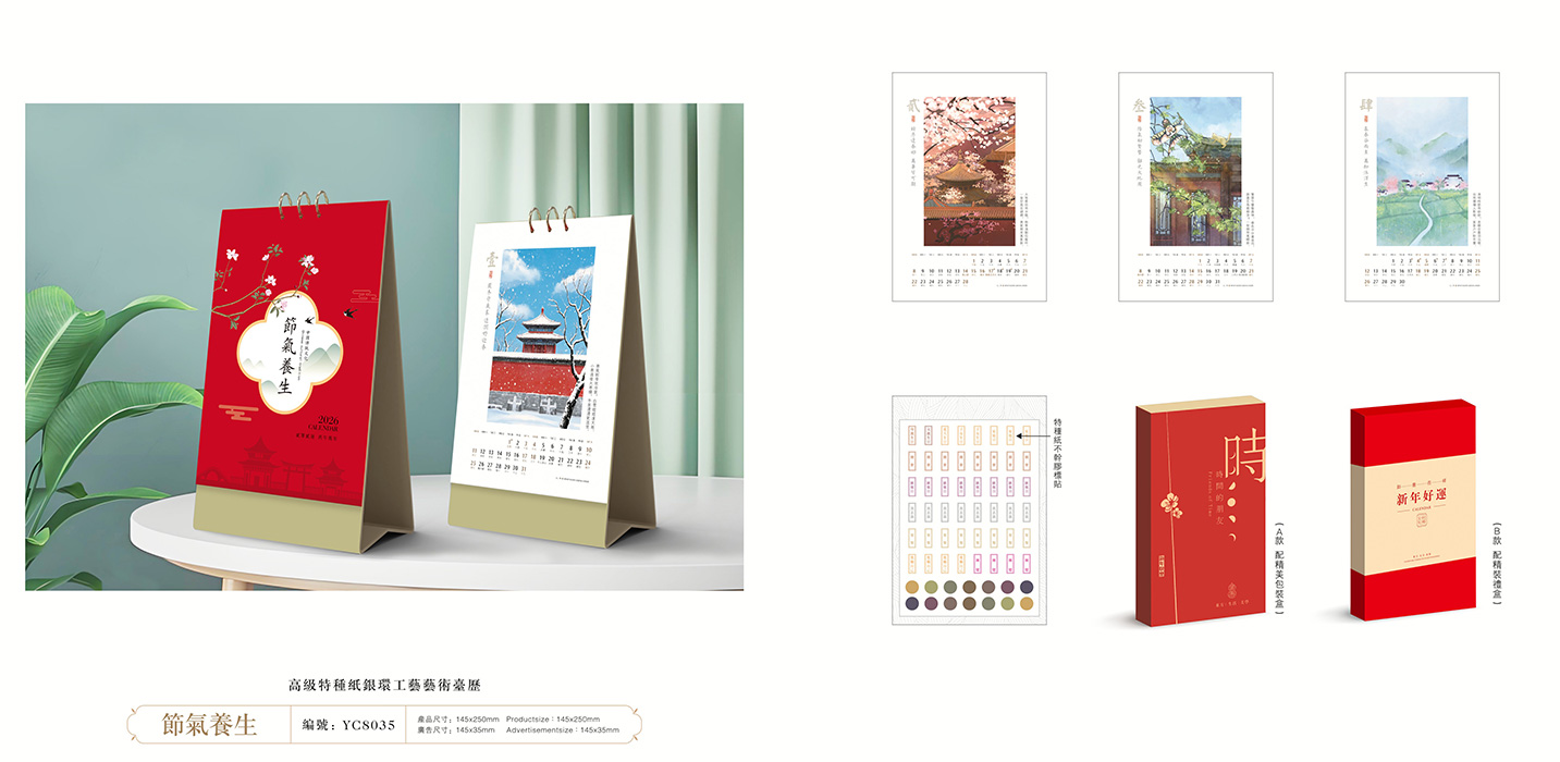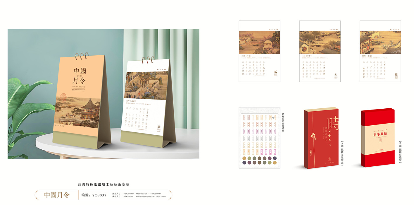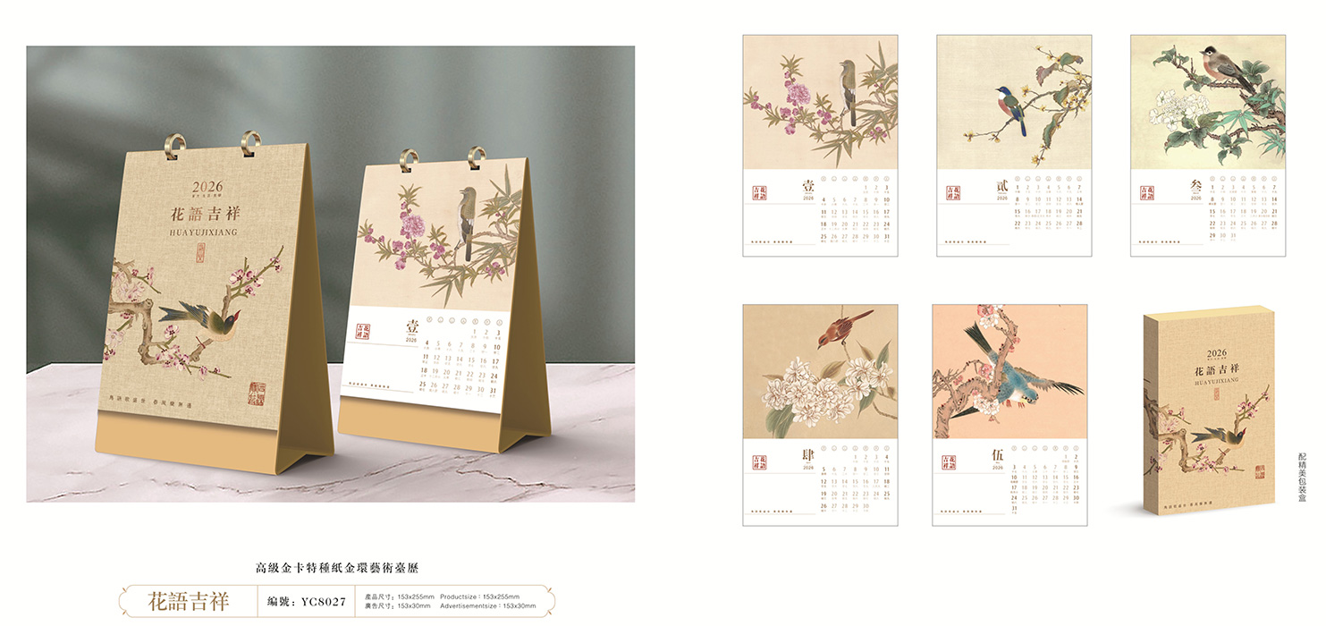 YFYC8052高级特种纸深凹凸工艺分页台历