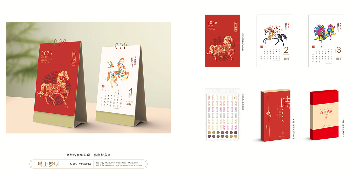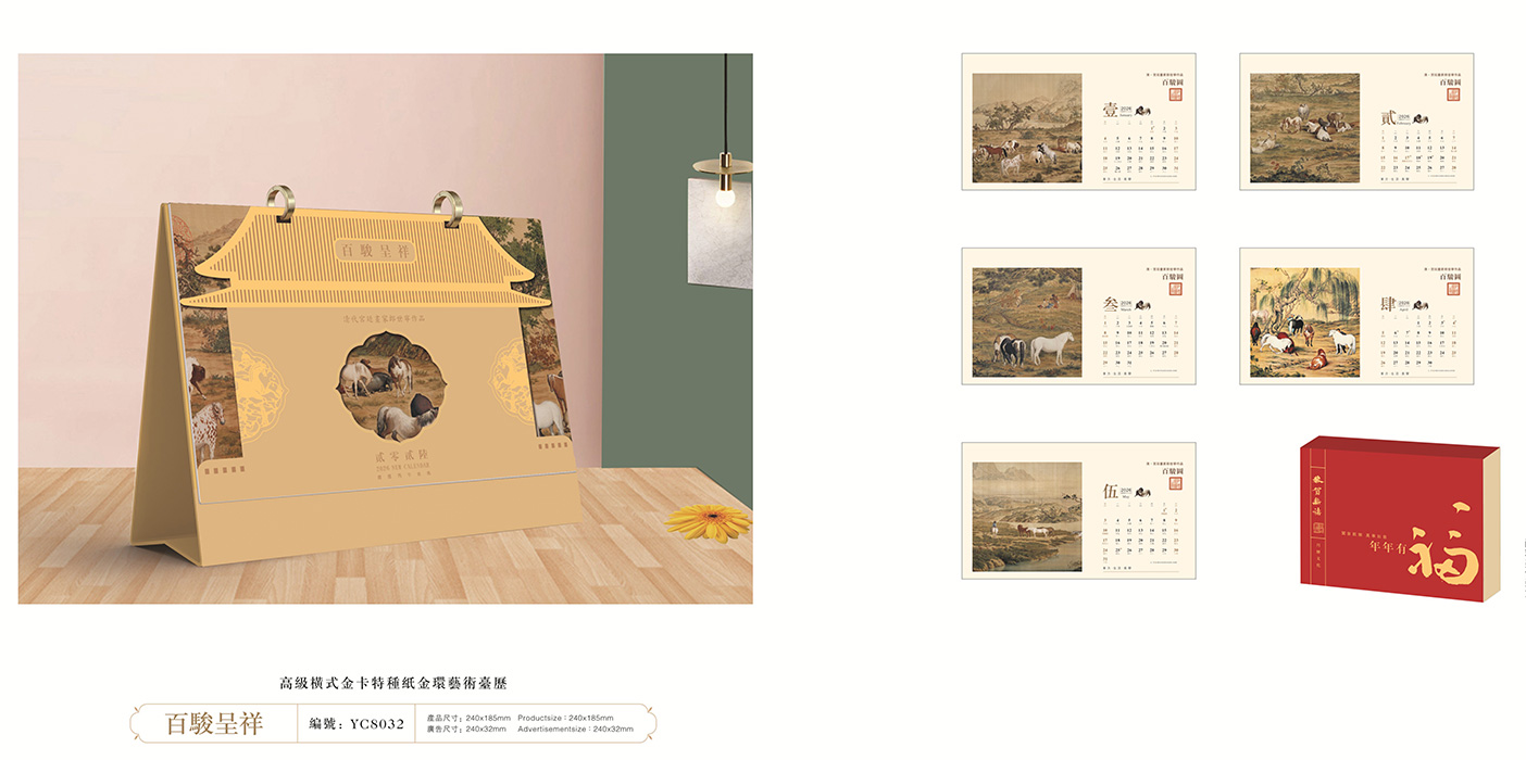 YFYC8032高级横式金卡特种纸金环艺术台历