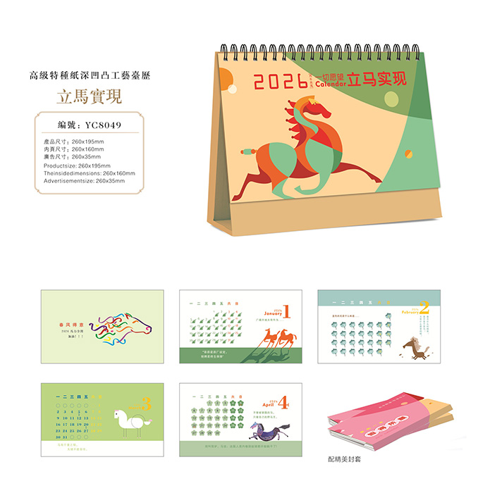 YFYC8051高级特种纸深凹凸工艺分页台历